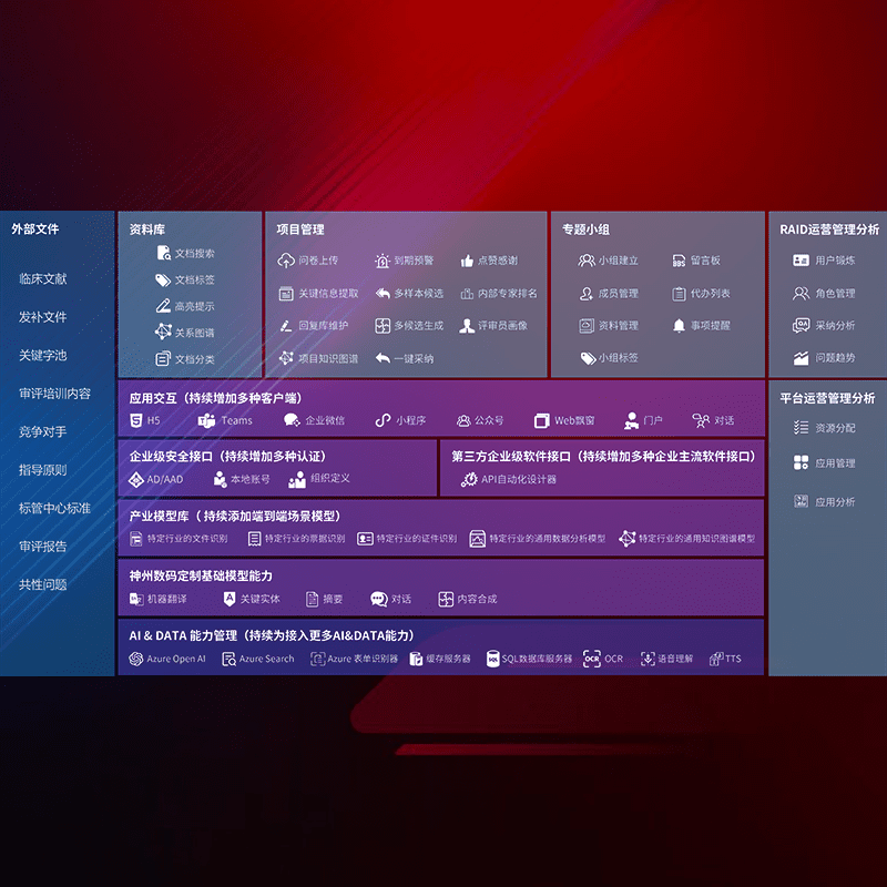 医疗器械产品上市前,,,,要熟悉严格与繁复评审标准,,,,整理分析监管机构指导文件中的海量信息。。。。企业急需一个智能化解决方案,,,提升知识管理效率,,提高评审通过率,,,以提升其市场竞争力。。。。